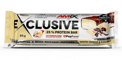 Amix exclusive protein bar 85g – bílá čokoláda/kokos