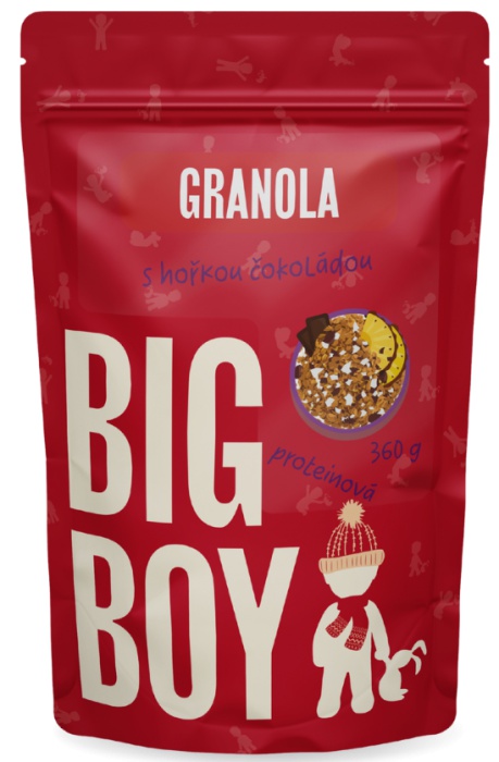 Zapékané müsli s bílou nebo hořkou čokoládou a ovocem zbavené vody vymrazením.