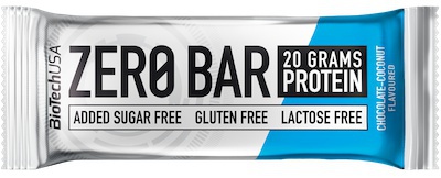 Tyčinka Zero Bar od firmy Biotech USA je proteinová tyčinka s vysokým obsahem bílkovin a absolutně bez cukru.