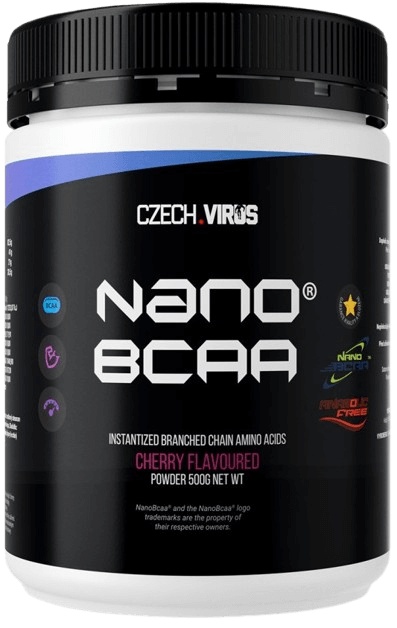 Czech Virus Nano BCAA® 500 g – revoluční forma instatních BCAA pomocí nanotechnologie, přírodně fermentované BCAA, testované na zakázané látky, balení obsahuje 100 dávek