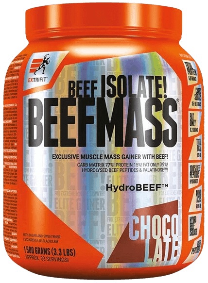 Extrifit BeefMass 1500 g – Gainer s hovězím proteinovým izolátem a palatinózou pro sílu a přibírání svalové hmoty!