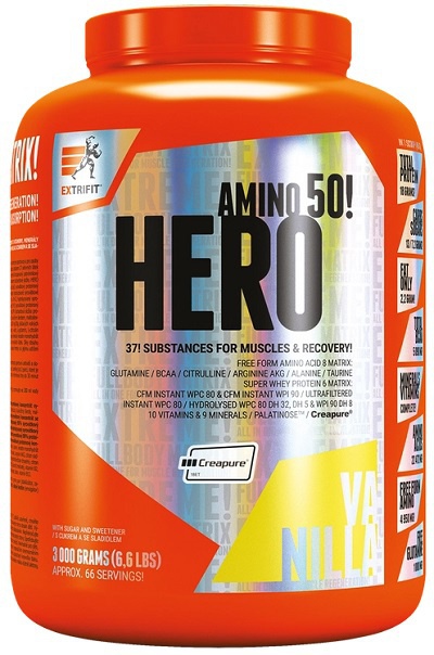 Extrifit Hero 3000 g nastartuje regeneraci a obnovu svalové hmoty ihned po dokončení tréninkové jednotky. Obsahuje vůbec nejširší spektrum nutných účinných potréninkových substancí ve vysokých dávkách.