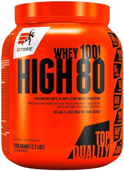 Extrifit high Whey 80 1000 g – špičkový 100 % syrovátkový proteinový koncentrát a CFM proteinový izolát pro nárůst svalové hmoty!