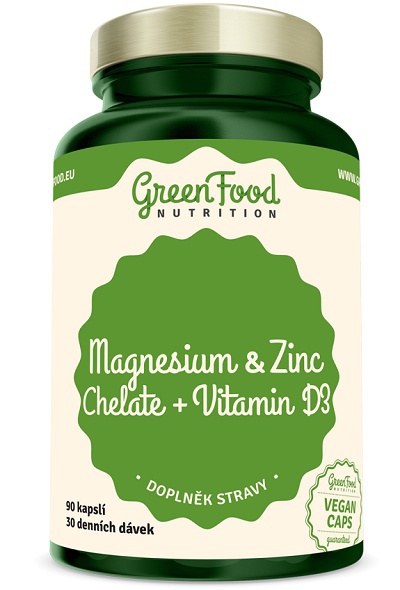 Greenfood hořčík a zinek chelát + vitamín d3 90 kapslí
