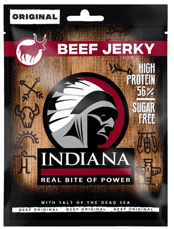 Sušené maso Jerky 25g hovězí – 25g sušeného masa odpovídá 60g syrového masa, se všemi prospěšnými nutričními hodnotami. Kalorická hodnota 1 balení Jerky se pohybuje v rozmezí od 237 do 270 kJ. Jerky se tímto řadí mezi potraviny vhodné pro stravování během