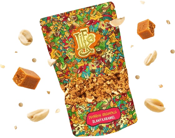 Bezlepková granola bez obsahu rafinovaného cukru, umělých aromat, barviv ani konzervantů.