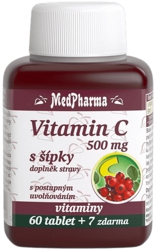 MedPharma Vitamin C 500mg s šípky 67 tabletvitamín C je důležitá antioxidační látka lehce rozpustná ve vodě, což způsobuje její vyplavování z organismu během krátké doby.