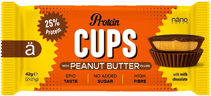 Protein Cups od Näno Supps je lahodná kombinace slaného arašídového másla a mléčné čokolády.