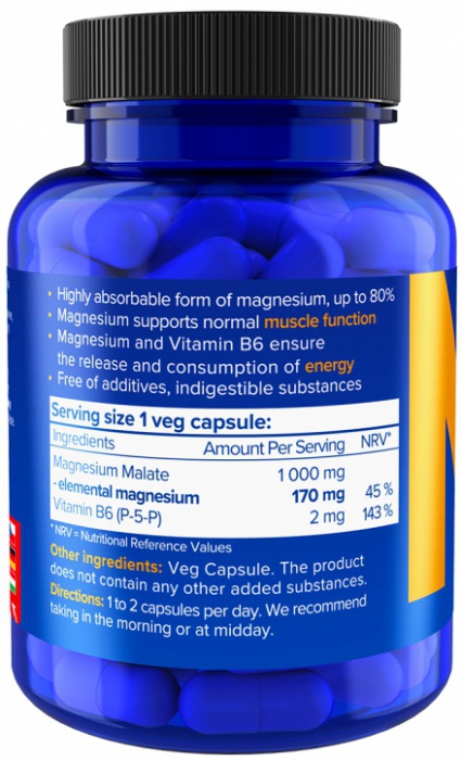 Obsahuje 170 mg elementárního hořčíku a 2 mg vitamínu B6 v každé veganské kapsli