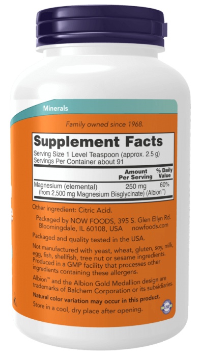 Now foods magnesium bisglycinate powder 227 g