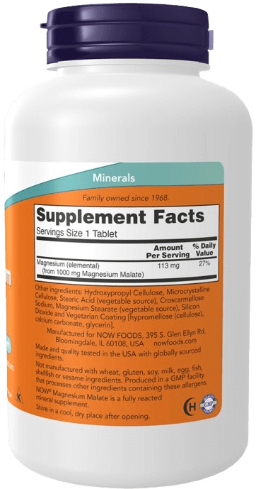 Now foods magnesium malate (hořčík malát) 1000 mg 180 tablet