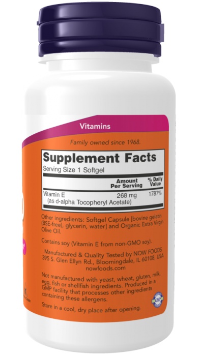 Now foods vitamin e-400 natural d-alfa-tokoferyl 400 iu 100 softgel