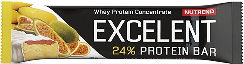 Nutrend Excelent Protein Bar 85 g – Delikátní dvouvrstvá proteinová tyčinka. Excelent Protein bar je tyčinka bohatě posypaná ovocem či oříšky, zalité v čokoládě nebo jogurtové polevě. Excelent Protein bar obsahuje 24% bílkovin a 43% sacharidů.
