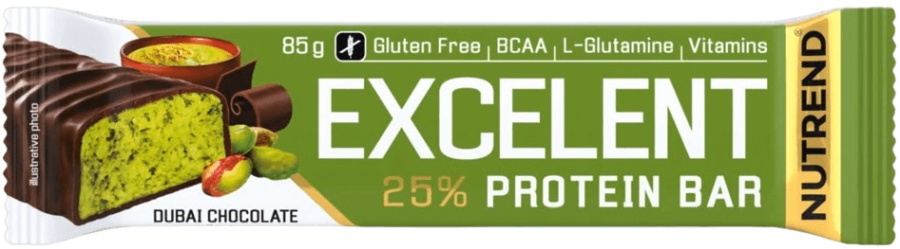 Nutrend Excelent Protein Bar 85 g – Delikátní dvouvrstvá proteinová tyčinka. Excelent Protein bar je tyčinka bohatě posypaná ovocem či oříšky, zalité v čokoládě nebo jogurtové polevě. Excelent Protein bar obsahuje 24% bílkovin a 43% sacharidů.