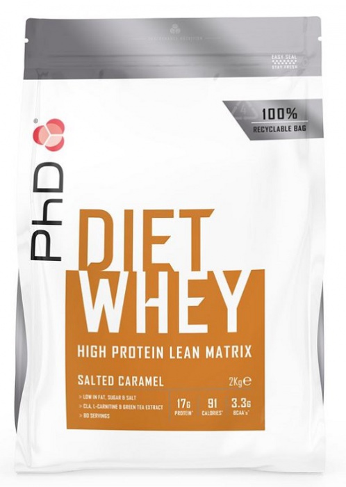 PhD Nutrition Diet Whey Protein 1000 g – VYSOKOPROTEINOVÁ FORMULE s aditivem účinných suplementů podporujících aktivní spalování tuku: CLA, L-karnitin (ALC), extrakt ze zeleného čaje, nenasycené mastné kyseliny ( EFA – lněné semínko ).