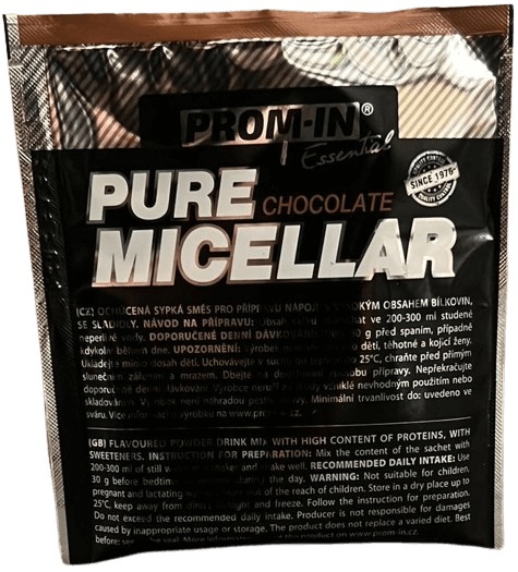Prom-in Essential Pure Micellar 30 g – Lídr mezi kaseinovými produkty. Pure Micellar obsahuje pouze čístý micelární kasein v nativní formě.