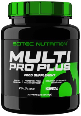 Jeden sáček Multi Pro plus obsahuje celkem 29 účinných látek na den, včetně 13 vitaminů, 9 minerálů a 4 rostlinných extraktů.