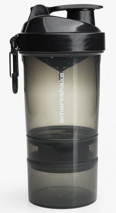 smartShake Original 2GO 600 ml – originální víceúčelový shaker se 2 šroubovacími zásobníky, vyroben z netoxického plastu, leslký povrch s hladkými okraji a karabinou.