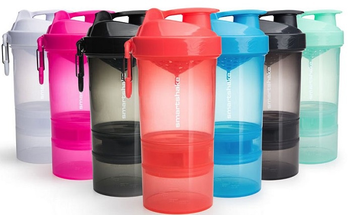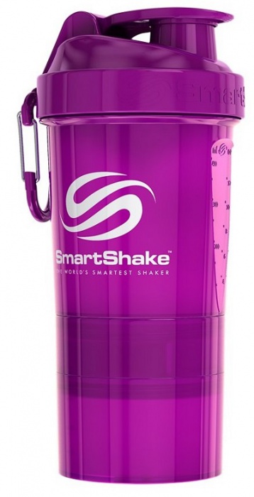 smartShake Original 2GO 600 ml – originální víceúčelový shaker se 2 šroubovacími zásobníky, vyroben z netoxického plastu, leslký povrch s hladkými okraji a karabinou.