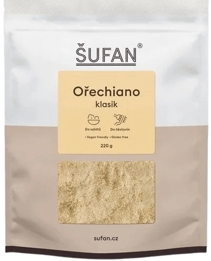 Spojení jemné mandlové a kešu mouky s lahůdkovým droždím. Připomínající chuť sýra parmezánského typu.